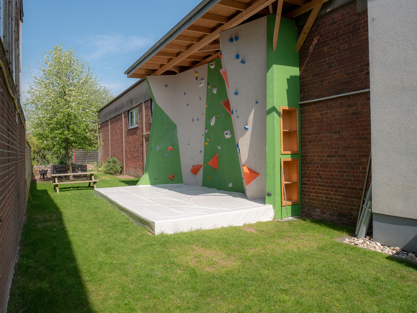 Egal ob Anfänger, Fortgeschrittener oder Profi, im Kraftraum findet jeder seine persönliche Herausforderung. Um immer wieder abwechslungsreiche Boulder bieten zu können, haben wir ein Team von Routenschraubern, die in regelmäßigen Abständen Wandabschnitte für euch umschrauben. Wir sind eine Kinderfreundliche Halle und wollen Kinder in ihrem natürlichen Bewegungsdrang fördern und fordern. Dennoch sind wir bestrebt für eine ruhige und sichere Umgebung zu sorgen. Darum haben wir in unserer Halle einen separaten Kinderbereich eingerichtet, wo sich die lieben Kleinen zwischen den Klettereinheiten austoben können. In unserem Café findet leckere Kaffeespezialitäten, guten Tee, diverse Biere und Kaltgetränke, einige Snacks und geregelt am Wochenende selbstgemachten Kuchen. An sonnigen Tagen könnt ihr unseren schönen Außenbereich mit kleiner Terrasse, Außenboulderwand und Slackline nutzen.